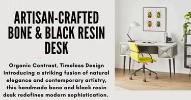 Ready to redefine your workspace? Explore the detailed craftsmanship and bring home the centerpiece that bridges the gap between nature's artistry and modern design. Discover the Artisan-Crafted Bone & Black Resin Desk collection today.